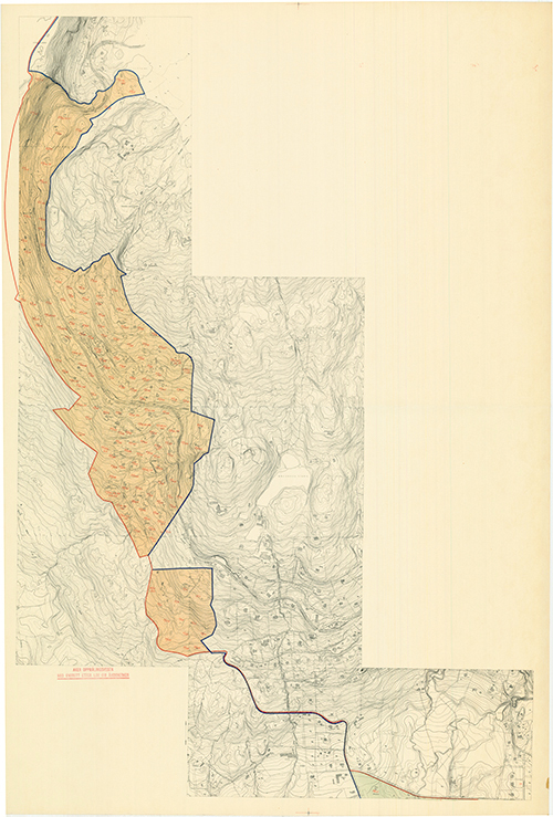 Kart over sognegrensen mellom Ullern og Vestre Aker 1938