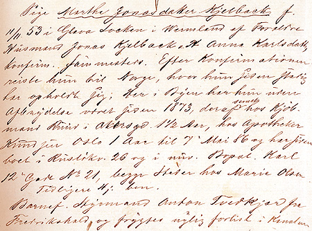 over tjenestejenta Marthe Jonasdatter Kjelback 1887
