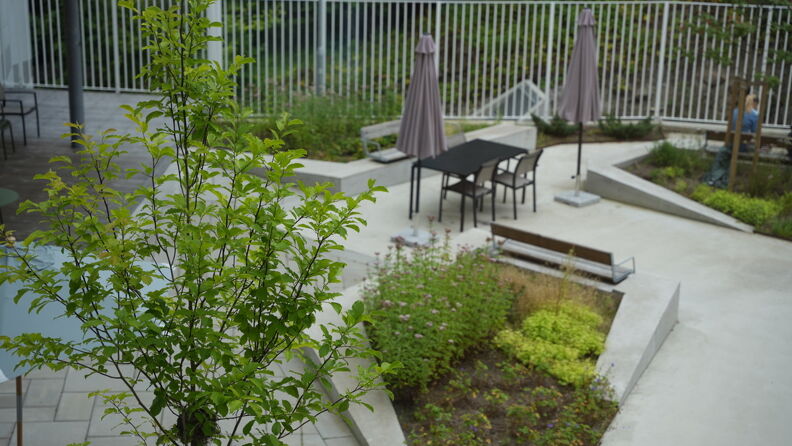 - Solrike og tilrettelagte uteplasser, sansehage, takterrasse med mer