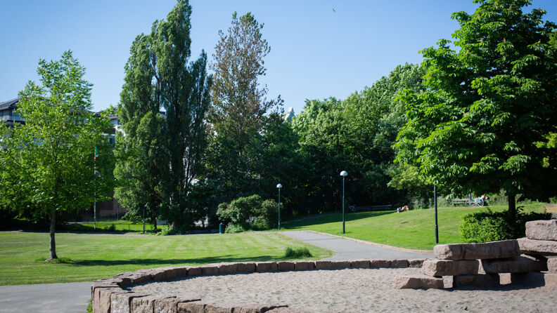 I parken ligger det en lekeplass og det er utplassert flere benker i parken. Noen av benkene har vegetasjon rundt, som gjør at det danner seg et eget rom rundt benkene. I midten av parken er det en stor og åpen gresslette.