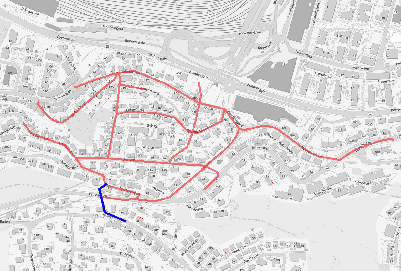 I løpet av første halvår 2026 skal vi starte med del to av prosjektet. Vi skal skifte ut vann – og avløpsledning i den resterende delen av Svingen, Ekebergveien/Oppegård gata mellom Oppegård gata 8A og Ekebergveien 20, Erlings gate, Egnehjemveien, og Ribbung gata. Det vil også pågå arbeider i Valhallveien ovenfor Oppegård gata.
