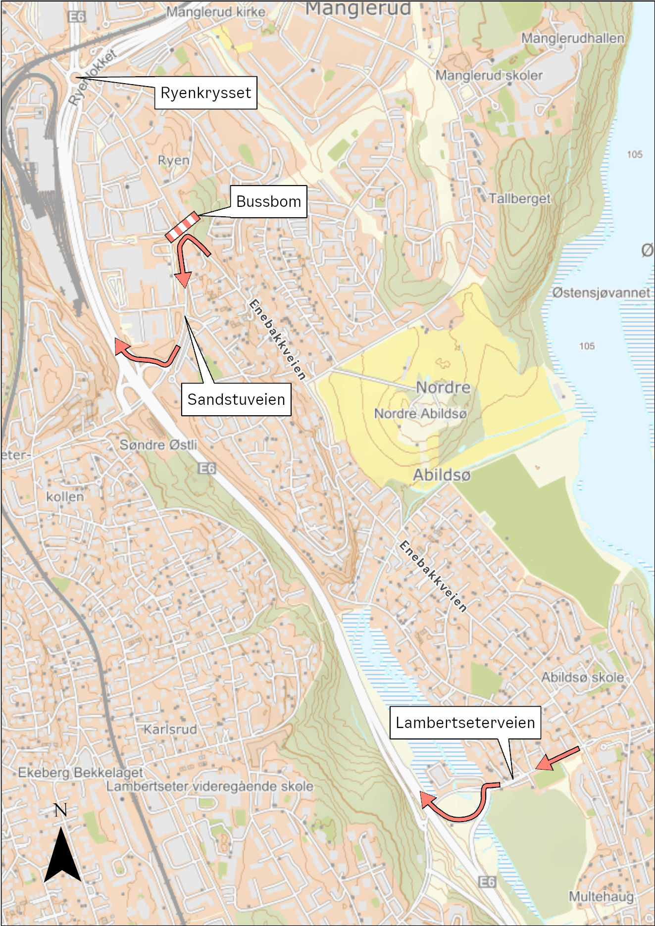 Bussbommen nord for krysset Enebakkveien/Sandstuveien er satt i drift igjen for å sikre god og forutsigbar fremkommelighet for busslinje 70 i retning Ryenkrysset. Bommen dekker nordgående kjørefelt og vil være i drift hele døgnet. Kun buss i rute vil ha anledning til å passere, og det medfører at annen trafikk må velge andre kjøreruter i området.