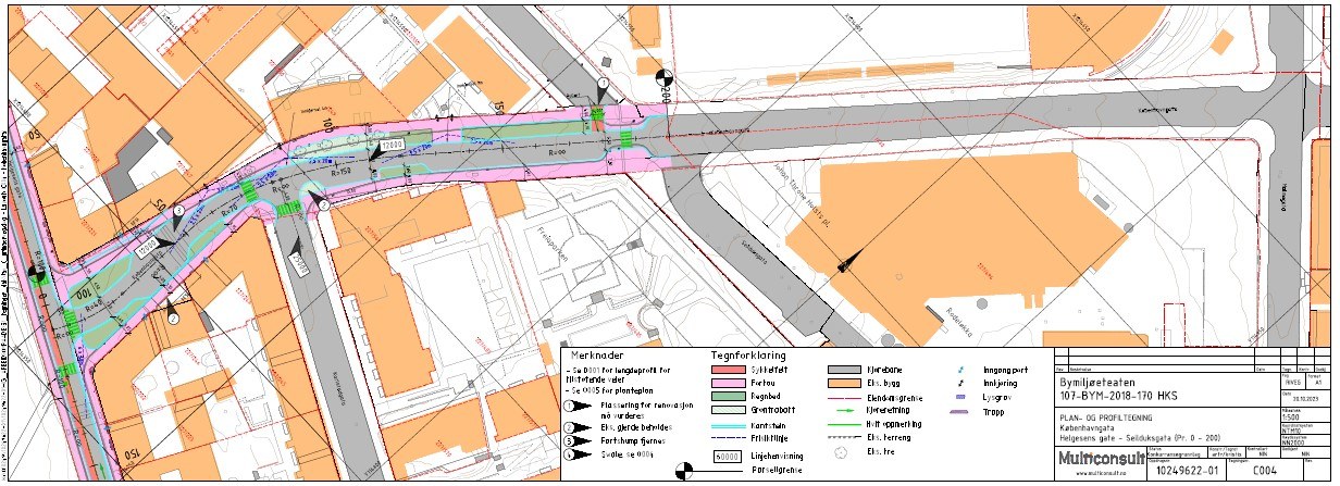 I Københavngata planlegges gateopprusting som skal bidra til bedret overvannshåndtering, økt byliv og forbedret trafikksikkerhet. Dette medfører at skråstilt parkering fjernes, fortauene utvides, krysningspunktene strammes inn, samt det etableres regnbed.