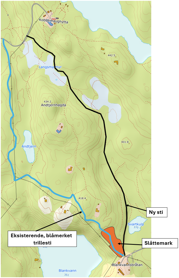Ny sti mellom Blankvannsbråten og Kobberhaughytta