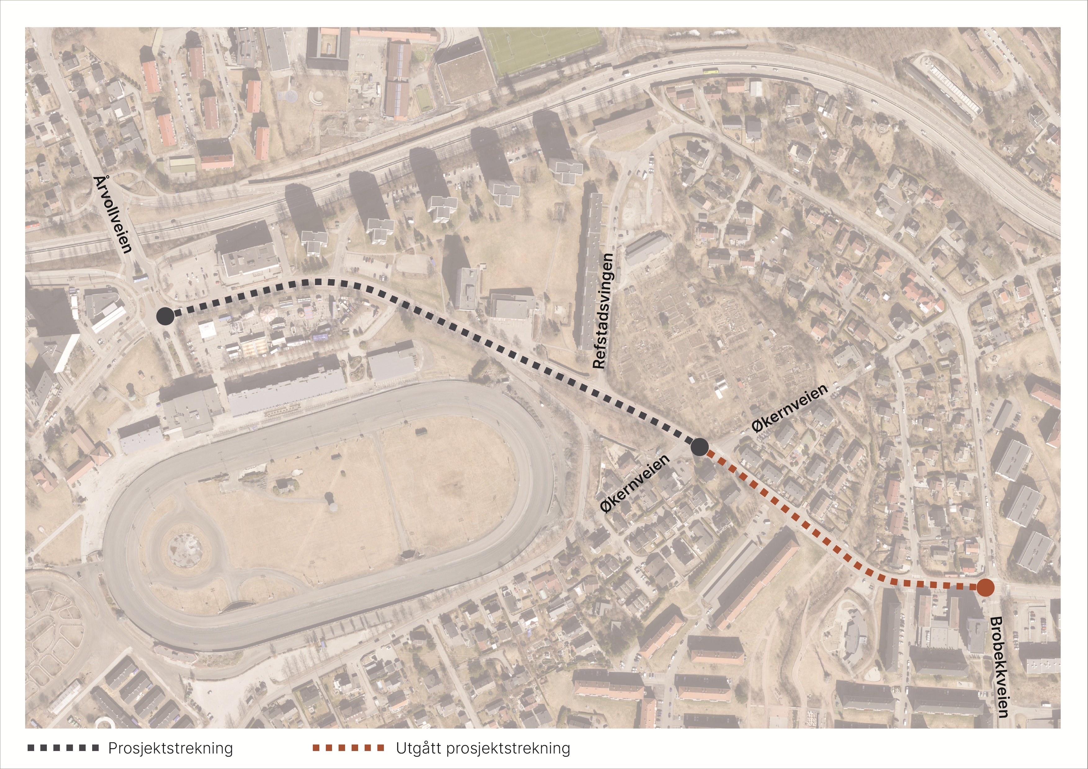 Opprinnelig gikk prosjektstrekningen fra Årvollveien/Bjerkekrysset frem til Brobekkveien. Bymiljøetaten har i 2025 satt ny avgrensning for prosjektet og denne er nå fra Årvollveien/Bjerkekrysset frem til krysset Refstadveien/Økernveien. For den resterende strekningen Økernveien-Brobekkveien er det aktuelt å se videre på denne i et eget prosjekt. Bymiljøetaten vil gå ut med informasjon om et eventuelt eget prosjekt her straks det er tatt stilling til dette.